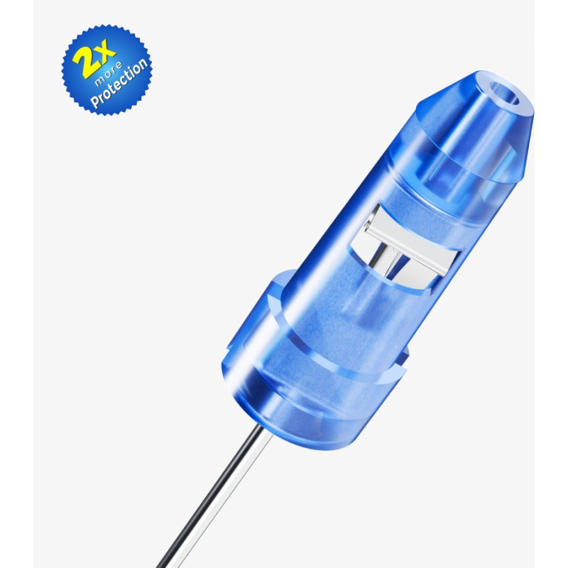 Zapewnia podwójną ochronę przed zakłuciami igłą oraz przypadkową destrukcją.